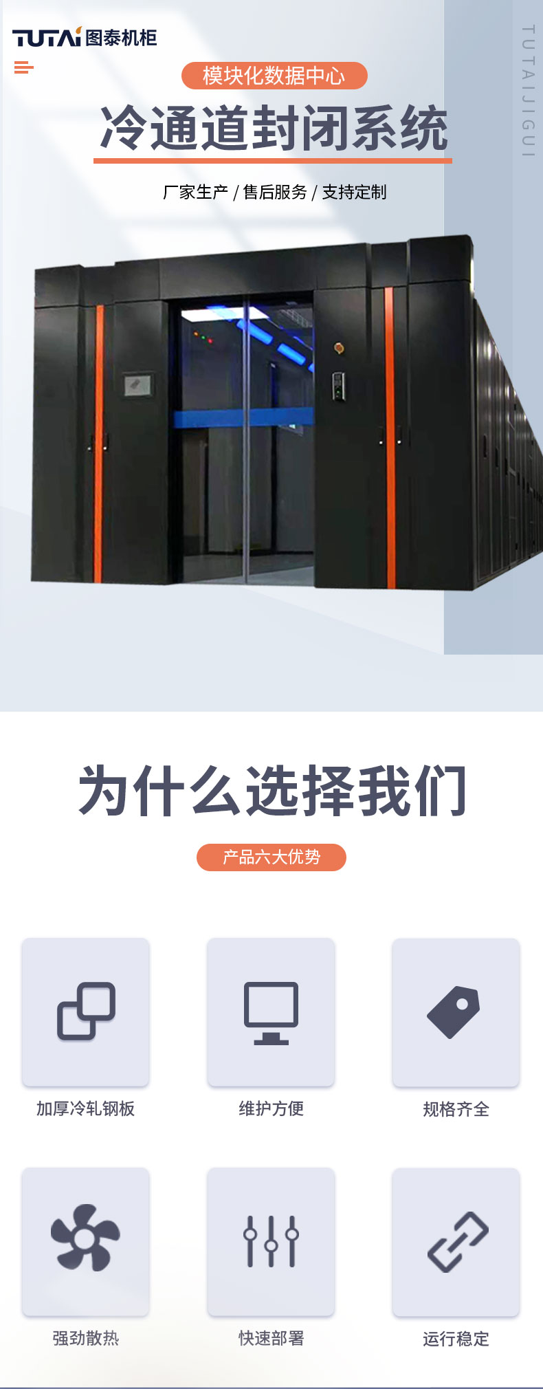主营:网络/服务器机柜,机房冷/热通道,屏蔽机柜,一体化智能柜,静音机柜